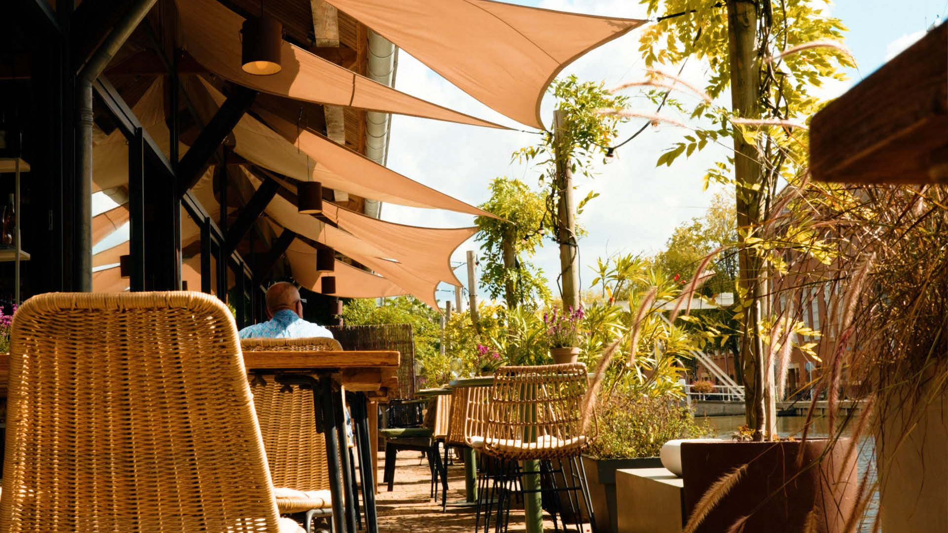Binnen kijk je uit over het water; buiten strekt het terras zich uit langs de kade — een plek die het ritme van het seizoen ademt. De authentieke details, de prachtige ligging en de verbondenheid met het verleden maken de Kleischuur tot een Goudse parel.
