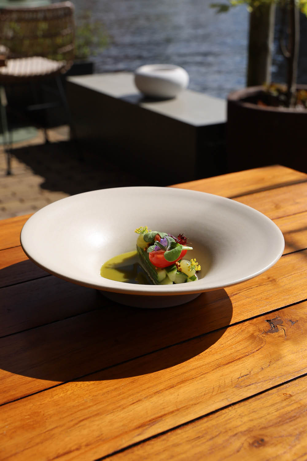 “Elk gerecht dat onze keuken verlaat is met aandacht opgebouwd: vers, seizoensgebonden en doordacht. Alles wat we doen; in de keuken, in het glas, aan tafel, is erop gericht om mensen een bijzondere avond te geven.